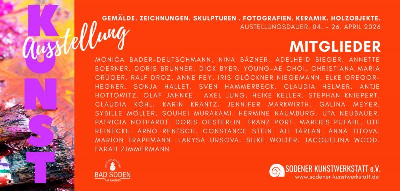 Mitgliederausstellung der Sodener Kunstwerkstatt vom 4. bis 26. April 2026